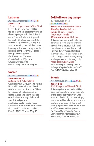 Fee: $100/$125 after May 15 Facilitated by: CJ Varsity Coach